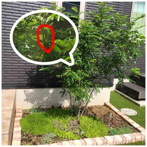 台風前に、上の方に伸びた枝を切ろうとしたら2匹も住んでいました 切る前に確認してよかった