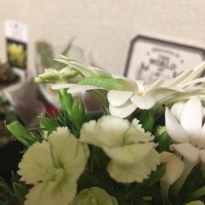 昨日買ったお花に、イモムシさんが🐛 お家の中じゃかわいそうだから、ベランダにお花ごと移動🌼