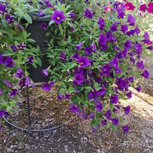 カリブラコア紫💜 最近の長引く雨でますます花数を増やしています。🙌 100均でプランタースタンドを見つけて ちょっと底上げしてあげました。