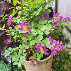 サルスベリ2度目の復活🙌🎊 鉢が小さくて夏場は乾きやすく、1度目はなんとか復活しましたが、2度目はなんともならず😓 枯れた枝を切り落として、植木鉢を大きめにして来年に備えたところ、直ぐに次々と新しい枝が伸びて また花を咲かせてくれました😂🙌