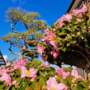 山茶花が咲いた咲いた🙌 青空だけど、今日はとっても寒い🫥