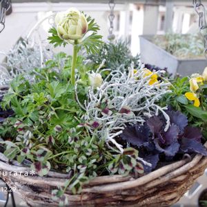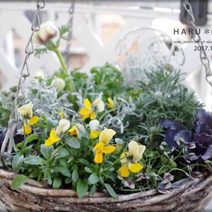 お正月用のフラワーアレジメントをリメイク。二つに分けました。オアシスが丸見え~~~爆、汗;