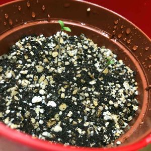 10月ですが、トマト植えました!🍅 ちゃんと芽も出てます🌱✨ ハートの実がなるそうですー! 楽しみ!!!