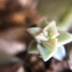 葉挿し苗に挑戦して順調に成長中?です。 直径約1cmのサブコリンボサです。 あ、2018年初の投稿です、今年も宜しくお願いします。 100均のマクロレンズでのpicです。