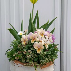 こんばんは♪ 今日は久しぶりにスカッとした天気でした☀️ 帰宅後水切れの鉢も💦 ①昨日投稿のマリアージュ🌷 たぶん昼間はもう少し開いてただろうなぁ✨ 可愛らしいです🥰 ②お騒がせしたスプリンググリーン🌷も一輪咲きました♪ 蕾が細かったから…なんとなく予感もありましたが💦 ふんわりではなかった😅 でもシュッとして良い感じ! ③オステオスベルマムのパティエシリーズも咲き始めました🧡 こちらは秋の剪定をしてあったのでヒョロっとしてません😆 蕾もまずまずなので楽しみです🎶 ④何度も投稿のフィオリーナ🩵 お手入れしてないので伸び放題💦 ⑤フィオリーナの鉢の裏側からシクラメンや〜っと咲きてきました😂 本当はスカビオサもいますが…結果失敗だったなぁ💦 フィオリーナは単独にするべきだったなぁ〜 どちらも飲み込まれちゃった😅 これも良い経験と言うことで‥ また暖かくなり体調管理もしなきゃいけませんね😉