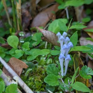 イヌセンボンタケ 灰青色の可愛いキノコ この周りに密に生えてました