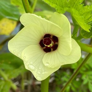 今朝 ニシキアオイの花に雨の雫💧 癒される光景を創ってくれた。 😊👍🎶📸