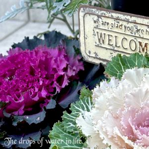 久しぶりのまとまった雨が降り 葉牡丹の真ん中にある水滴が ダイヤモンドのように輝いていました⿻。+.·*⿻ 写真には上手く撮れなかったわ💦