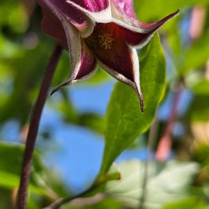 クレマティス・バックランド・ビューティー。 やっと咲きました。完全に枯れたと思っていたから、尚うれしい。 想像してた花とちょっとちがった。肉厚な花弁(?)は野菜のようでおいしそうな、いや、可愛い。 ツルが色んな向きに成長していくのが楽しい。