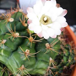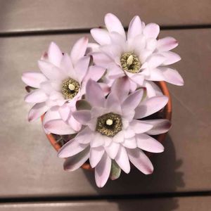 サボテン ギムノカリキウム 麗蛇丸 午前中開いて無かったのに昼ごはん食べてから見に行ったら開き過ぎでした。😅