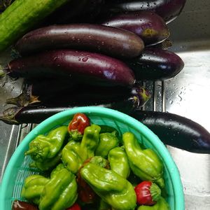 雨がポチポチ降った後の畑は野菜が元気に育ってました😄 ピーマンは小ぶりですが、茄子はパラダイス😍 大好きな私でも食べきれないので新鮮なうちにお裾分けしました〰️!