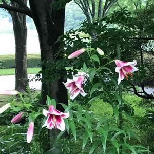 おはようございます☀ 今週は梅雨も一休み? 真夏の暑さになるとか💦 せめて写真だけても涼しげに🌿 小雨ふる林の中で咲く百合の花です✨