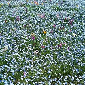 ネモフィラの丘 差し色のように、ところどころ違う花も🌼