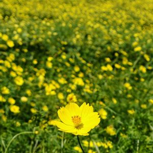 10/13㈪① 昨日行けて良かったです😃 こもれ日の丘のキバナコスモス レモンブライトは今日まで!! 明日14日には春の準備のため、刈り取られるそうです 何年か前は丘にはピンクの濃淡や白のコスモス センセーションが群生していて、キバナコスモスは西の広場の花畑でした👀!! 今年は西の広場の花畑には秋のブーケガーデンが展開されていました☺️ どんな花が咲いていたかは明日載せますね〜♡ 本当は他の写真を5枚送ったはずなのですが、電波がクルクルしていたので、上手く送信出来ていなかったようです😆残念!!