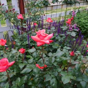 🌹サルビアネモローサは レデイメイアンの花色に合わせ様と植え付けました。