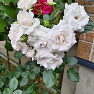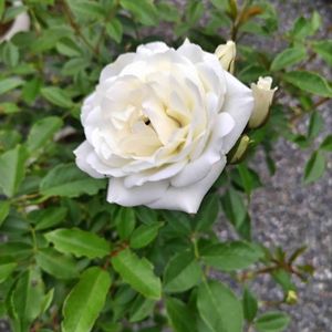 🌹アイスバーグ 今日は荒れ模様のの天気に成ってます時折突風と叩きつける様な雨が降ってます本来なら薔薇が一番綺麗なタイミングなんですけどね┐('~`;)┌