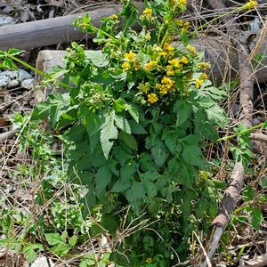 瀬戸内の海岸に咲いていた コセンダングサ(2025.9.24) 異常に繁った葉や融合した花は 「帯化」であろう こうした株が数本みられる①② 小さな海浜に ツルナやオカヒジキ アキノミチヤナギの細々とした株を覆うように ここではコセンダングサが幅をきかせている ③健康な株もみられるが 通常は筒状花のみのコセンダングサが黄色の舌状花をつけている! 調べるとコセンダングサはまれに黄色の未熟な舌状花をつけることがあるらしい 鑑別が必要なセンダングサ属の仲間があるとしたら 同様に黄色の舌状花をつけるセンダングサとコバノセンダングサだろうが コバノセンダングサは葉が細かく裂けている 一方センダングサは少し似た葉を持つがコセンダングサの葉にくらべ幅広で先端の尖りも短い ある資料にはコセンダングサが環境ストレスに適応するため「帯化」を生じる可能性ありと記載されている コセンダングサも生態系被害防止外来種に指定されていたが2022年にどういうわけか外されている おそらく耐塩性を持つのだろう その能力を生かして海浜をも生存場所にして逞しく生きる姿を見っけ!