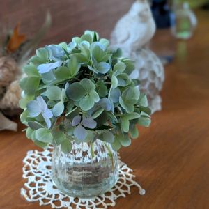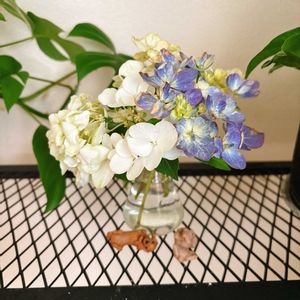 涼しいお部屋から💚🩵 最後に咲いたクリスタルヴェール。 咲きたての水色のお花を生けて、それから少しづつ色が変わってく様子を楽しんでます🥰 お部屋でもこんな楽しみ方があるなんて、ホント素敵💚🩵