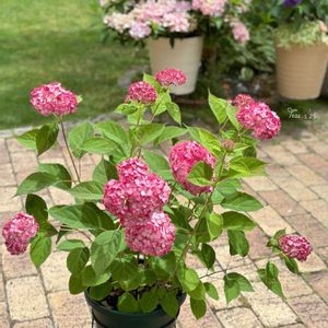 ① アナベル ミニルビーの可愛い時期を投稿していませんでした😍可愛い💕(7/15撮影) 後ろのラグランジア クリスタルヴェールやヘリオトロープブライドブルーもいい時期でした🥰 ② その撮影の約1ヶ月後💕今日(8/14) 渋くグリーンも混じりこれも良き🎶 8号鉢ですが狭そうですね🤭鉢増ししなくては💪 ヘリオトロープは昨日✂️してスッキリ✨