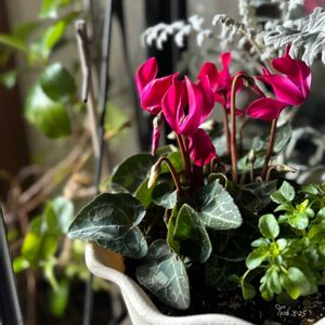 こんばんは☺️ 以前シクラメンをいくつか育てていましたが やはり置き場所問題やあまり思うように咲かなくて 何年か前にやめました………が! ①② ダメでも¥175鉢代だわ〜🎶と先週HCからお迎えしたレスキュー寄せ植え🤭なかなか💕 ・ミニシクラメン(濃いローズ) ・ビオラ(赤紫?) ・シロタエギク 🏷️金曜日の蕾たちに参加します✨ ③ 破格だったレスキュー直後の寄せ植え✨ ビオラは徒長していて✂️しましたが素敵でしたよ💕 なんとか春までもってくれたら嬉しいけれど… うん期待しないでおこう🤗 ④ 本当はこのガラ袋を買いにHC行ったの(10枚400円位) 今までのバラの鉢植えは不織布で巻き、横に倒して上からもシートを被せていました☃️ 今年はInstagramにて#花匠ばら壱 さんを参考に✨被せて縛るだけでいい感じです👌(11/15撮影) ⑤ 後は横に倒して雪の下にします(11/19撮影) 雪が降ったり解けたり…根雪はまだみたい❄️