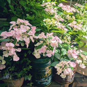 春の🥀が終わり💠紫陽花祭りを迎えてます╰(*´︶`*)╯♡ 瑠璃色の深い発色の良い紫陽花はマジカルクリムゾンパープル💠本当にシックで素敵💓 昨年のノリウツギは残念ながら開花直前でハダニ🕷️に襲われ😱 今年はノリウツギに似ていますが葉っぱが丈夫そうなカシワバアジサイをお迎えしました💓 ハイドランジアクリスタルベールは、水色から今やパープル??少しずつ色を変えながらも頑張ってます🤭 最後は昨年のブライダルシャワー 残暑の暑さで枯らしたと思っていましたが、お水だけはあげていましたら1枝だけまさかの復帰💓いつかワサワサまで回復することを祈るのみです🙏 備忘録まで…