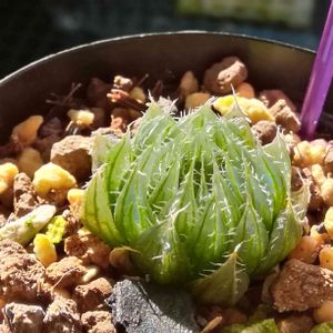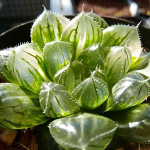 セタータ錦×狼珠の斑無しの方の株。 狼珠感0🐺 斑無しでもうとぅくすぃので、斑入りの成長も楽しみです。 斑入りはこれの4分1程度、成長おっそいです(*´-`) Haworthia オリジナル交配 というタグを作りました。 皆さんのオリジナルハオルチアを見せてください😊 オリジナル交配でもタグが出てきます(*´-`)