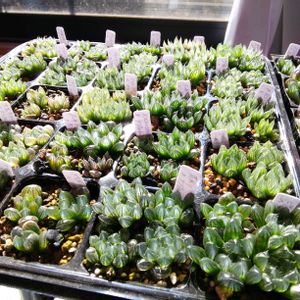 ハオルチア幼稚園 秋に植え替えたんたけど複数植えたやつはもうセルトレーにみちみち 3月に入ったらまた植え替えて今度は単独でセルトレーに植え替え。秋にまた植え替えになると思うのでその時に鉢上げしようかと思ってる。 この植え替えの時に抜き苗で選抜落ちが出る予定なのでまた里親募集をします。ちびっこだし、宅配便で着払いもなんだなぁと思うわけですがどうしたものかね。