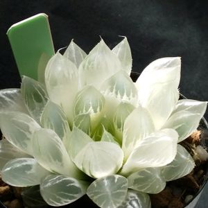 はい、今月の真白ちゃん こんなに白いのになんだか元気なので不思議 黄色じゃなくて本当に白系の色合いだしほぼ糊斑なのでちょっと異様な見た目 ・・・なのに根っこをやられても即復活の強さ
