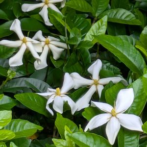 花散歩で✨ 🤍💚🤍💕💚🩵☁🤍💚🤍💚♪ 1️⃣今日のお花✨ ク チ ナ シ 撮影 6/9 2️⃣オシロイバナ 3️⃣青空 8/16 18:40 4️⃣ノリウツギ 5️⃣テイカカズラ 今日も 笑顔😄で 過ごせますように💐