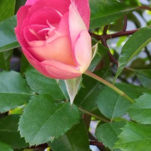 庭の入口のアーチ 春風の一番花が咲きました✨🌹✨ もうすぐアーチを覆うほどのお花が咲きそうです❣️