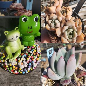 🏷毎月6日はカエルの日 🏷カエル仲間 KOHちゃんからのプロリフィカに rinrinちゃんからの豆粒🐸🐸ちゃん💕 可愛すぎやん🤣🤣🤣 2枚目 これもKOHちゃんからの桜のしずく🌸 私の名前を意識して🎁してくれた💕 ハナゲケロちゃんは、Mikiちゃんから🤣🤣🤣 3枚目 🏷センペルンルン木曜日 みたりんちゃんの💩おぼうぼピータン鉢に ぼんぼんちゃんからのセンペル💚 小林レッドとハート✨ キモカワ🐸はガチャガチャ(笑) 4枚目 先日るるちゃんからのリメ🥫に寄せ植えしたものと 奥に見える風車🐸は棟梁2ちゃんからの🎁🤣🤣🤣 5枚目 KOHちゃんからのピンクシフォンに 粉吹きケロタン🤣🤣🤣 相変わらずブチャイク(笑)