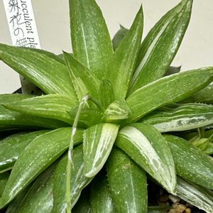 ハオルチアのバリエガタ こーてしもた… いつもホムセで買う多肉価格帯の 3.5倍のお値段 美しいから良しとしよう キジカクシ科ツルボラン亜科 ハオルチア属 菊花の舞錦 Haworthia laetevirens 別名:菊花の舞 雷牙