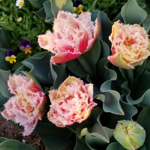 ビオラ🤍チューリップ🌷 ビオラ満開です。 フリンジ咲きチューリップのクイーンズランドの球根を花束植えにしてます。 11月10日のpicからこんなに大きくなりました
