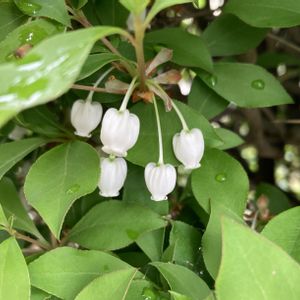 おはようございます💚 ➡️涼しげで可愛らしいベル型🔔ゼノビア ツツジ科スズランの木 ⬅️ドウダンツツジのようで小さい花 名前が分かりません.。oஇ 検索したらペルネチア(真珠の木) 花は似てますが白い実は付きません(^^;