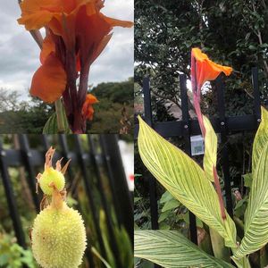 💛❤️行ったり来たり帰り道❤️💛 続き② カンナのお花が大きくて🌼‼️ まだまだ頑張ってましたよ👍👏👏 葉っぱが縦縞の美しいったら。。 次の世代にバトンタッチの準備も👌👍‼️ 大きく膨らんでました。