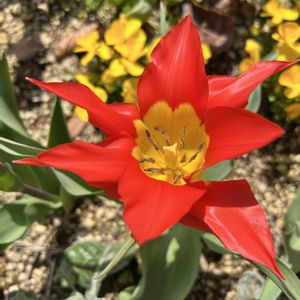 こんにちは🌧🌀🌀 ものすごい強風で鉢は倒れ花は斜めになっています 🏷真っ赤な火曜日