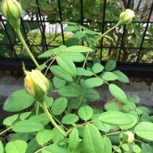 2つ目のクレアちゃんと、順番待ちの蕾さん達🌹ジンジャーさん、Gグローリーさん、レオナルド君です。秋は、あの憎っくきゾウムシがいないからいいよね〜😁✨