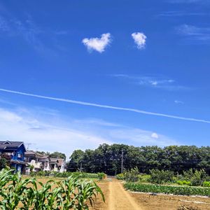 土曜はお空の発表会 ひまわり畑を出たあとに、振り返ったら、1本のひこうき雲✈ 🏷️土曜はお空の発表会 参加させてね。 2025/0719 am11:00pic