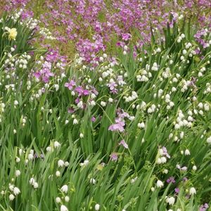駅の近くの空き地を埋め尽くす花々💮🌸💮🌸💮🌸 スノーフレークとムラサキハナナ、きれい。