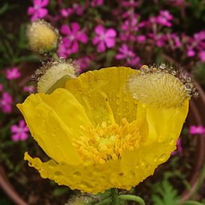 おはようございます😊 雨上がりのポピーさん✨ 咲きたて➰です🎵 まだ、 がくがくっついてますね😊