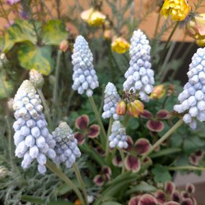 ムスカリたちが可愛く咲いています🎶 アップで見ると小さな花が健気に咲いていてますます可愛らしい😍 1枚目はベビーブレス。 2枚目と3枚目はアルメニアカム。 4枚目は八重のスイセン。 ムスカリも水仙も植えっぱなしで毎年咲いてくれるのでありがたいです😄 最後は西洋オキナグサ。 ふわふわの花が可愛らしいのですが、葉っぱだけの期間が長いので管理を楽にしたくて、秋に鉢植えだったものを地植えにしました😆 無事夏が越せますように🙏🏻 ̖́-