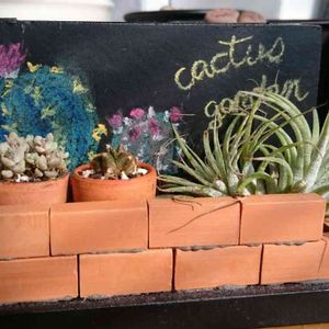 キャンドゥでgetした、ミニサボテン🌵🌵 SOCKERの中、作り始めたミニチュアガーデンに並べてみました😄