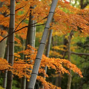 モウソウチク イロハモミジ? 竹ともみじの組み合わせも美しいですね 以下、樹木札より モウソウチク イネ科 多年生常緑竹 中国原産で1786年に薩摩藩にもたらされたという。樹高10~22m、直径8~18cmで節の環は1個で節間が比較的短く、材質部は厚い。たけのこは春の味覚として食用に利用されます。 (最後の一行、札の木が朽ちて読めない状態でしたが、文字の一部から推定して書いています。) 座間谷戸山公園 伝説の丘にて 📷:2020.12.12