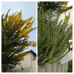 図書館のそばで初めて見た、三角葉アカシア ミモザのお花なのに葉が固くてビックリしました😲