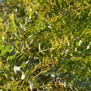 おはようございます😃 アカシアのツボミです。 これはサンカクバアカシアです。 三角形の葉っぱが枝にぎっしりと並んでいます。 ちょっとアカシアらしくない葉っぱです。 もうしばらくすると黄色い花が枝いっぱいに咲きます。 ギンヨウアカシアやフサアカシアが目立ちますが、この木も個性的で面白いです。😁