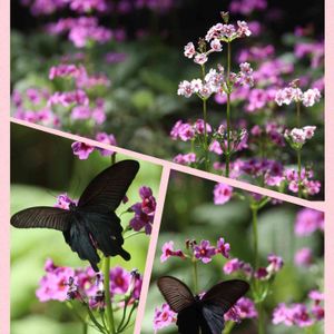 実家のお花🌸 百日草🌸&クロアゲハ🦋 コチラもカッコヨク撮れました🎶 羽根の模様が透き通るようにキレイ🖤 アゲハ🦋さんとヒラヒラパタパタ イソガシイネ😄