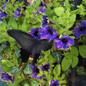 ペチュニア真輝とクロアゲハさん🎶 大きくてカッコイイ〜あ、雌だから美人さんだね😍 じつは見たことない別の蝶(中ぐらいの大きさの黒くて下方に青いスジ)が飛んで来たのでスマホを取って庭に戻ると このクロアゲハさんが飛んできたの。 さっきの蝶は誰?アオスジアゲハ(青スジが縦に入ってるでしょ)ではなくて、後ろ羽に横に青くスジが見えたの。。。 学研の昆虫図鑑には載ってなかったわ… 私の見間違いかな〜💦 幼虫サンは葉っぱを食べてしまうけれど、やっぱり蝶は優雅で見ててHAPPYになれるわ🎶🎶🎶 香川照之さんほど昆虫愛はないですが😅100年後には世界の昆虫は1%しか生き残ってないとの説があるのがとっても心配ですね、、、 そういいながら嫌な害虫駆除剤まいてる私です。。。南無〜🙏