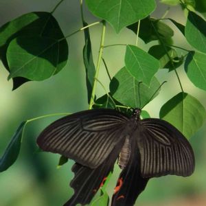 木陰にお客様 横顔美人の 黒いアゲハチョウ ひらひらと元気いっぱい