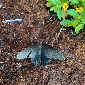 ひと月前くらいですが、散歩中に、 ハイビスカス🌺にクロアゲハ蝶がとまっていました。 アゲハ蝶、優雅に羽をひらひらさせてました。