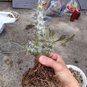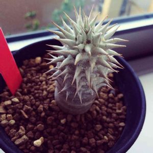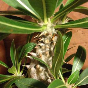 タネから育てて3年目になるパキポディウム。 なんだかほっそりしてるけど、先端に花が咲きしそうになってます!
